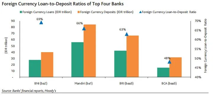 According to Moody's, the top four Indonesian banks have kept their loan-deposit ratios low in recent quarters.